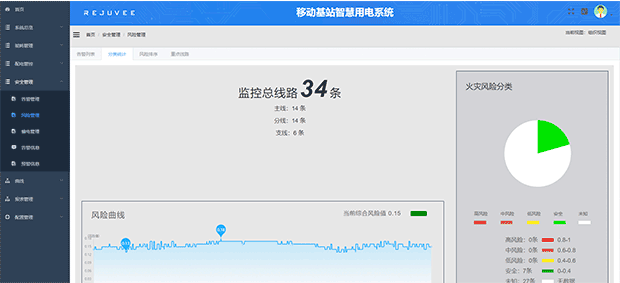 “风险管理”针对基站内所有的线路进行用电风险评估,为用户提供安全决策依据,如下图: